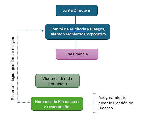 TGI garantiza la independencia estructural de la función de gestión de riesgos, siendo administrada por la Gerencia de Planeación y Desempeño como área que asegura de forma transversal el modelo de gestión de riesgos como apoyo a las líneas del negocio.