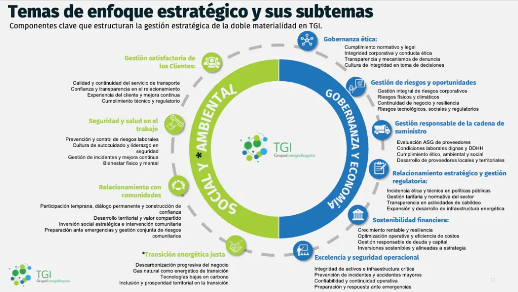 En línea con el propósito de mejorar vidas, transformar realidades y lograr prosperidad colectiva para todos, en 2025 la Transportadora de Gas Internacional S.A. ESP, llevó a cabo un proceso de revisión y actualización de sus asuntos materiales, en colaboración con la firma consultora Environmental Resources Management Colombia Ltda.